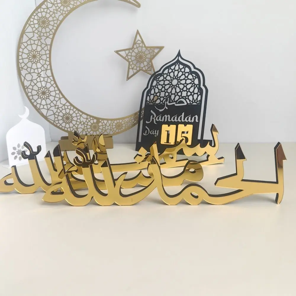 Nuovo oro creativo Ramadan Kareem ornamenti specchio viso luna Eid Mubarak figurine fai da te acrilico decorazione del desktop decorazioni per la casa