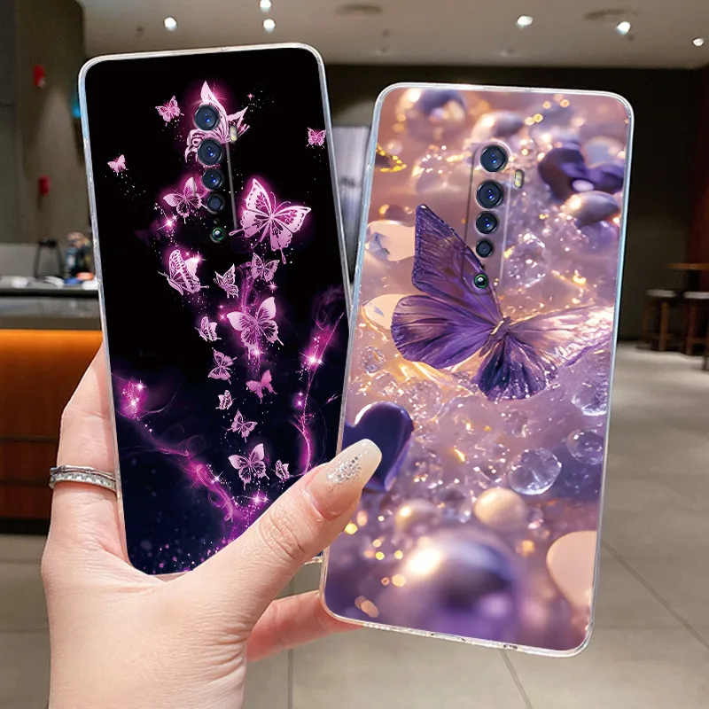 Per OPPO Reno 2 Custodia OPPO Reno2 F Custodia per telefono Reno2 Z Fiore Farfalla Capa Coque Trasparente Morbido Silicone TPU Cover posteriore Fundas