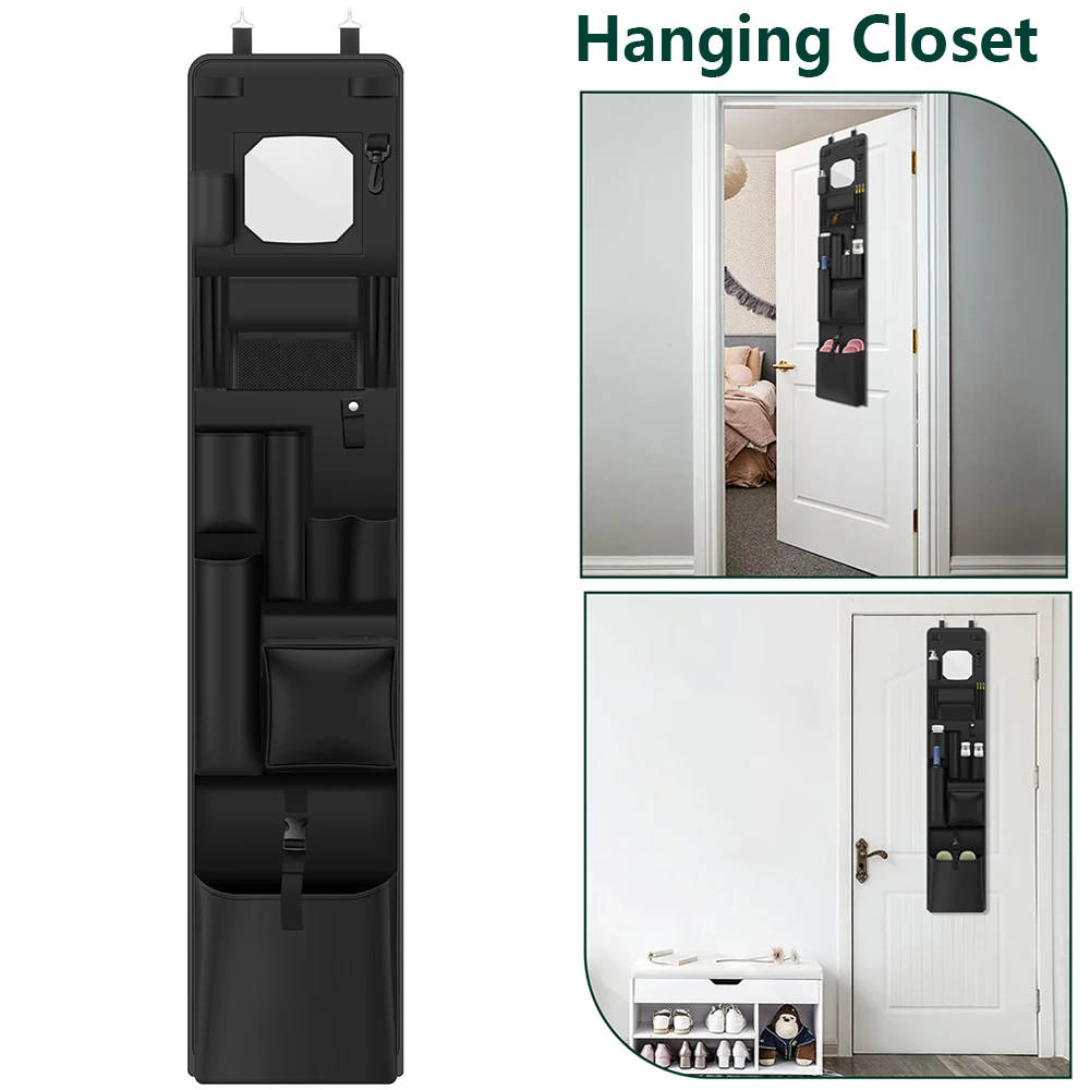 Armadio sospeso Organizzatore per armadietto sospeso impermeabile in tessuto non tessuto con specchio Borsa portaoggetti multitasche di grande capacità per la casa