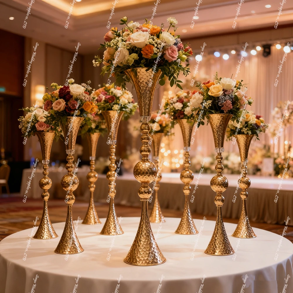 10 pezzi) 69-100 cm) Grande nastro/bianco/oro Vaso di fiori Tromba Secchio di fiori Supporto per fiori Centrotavola in oro per eventi di feste di nozze