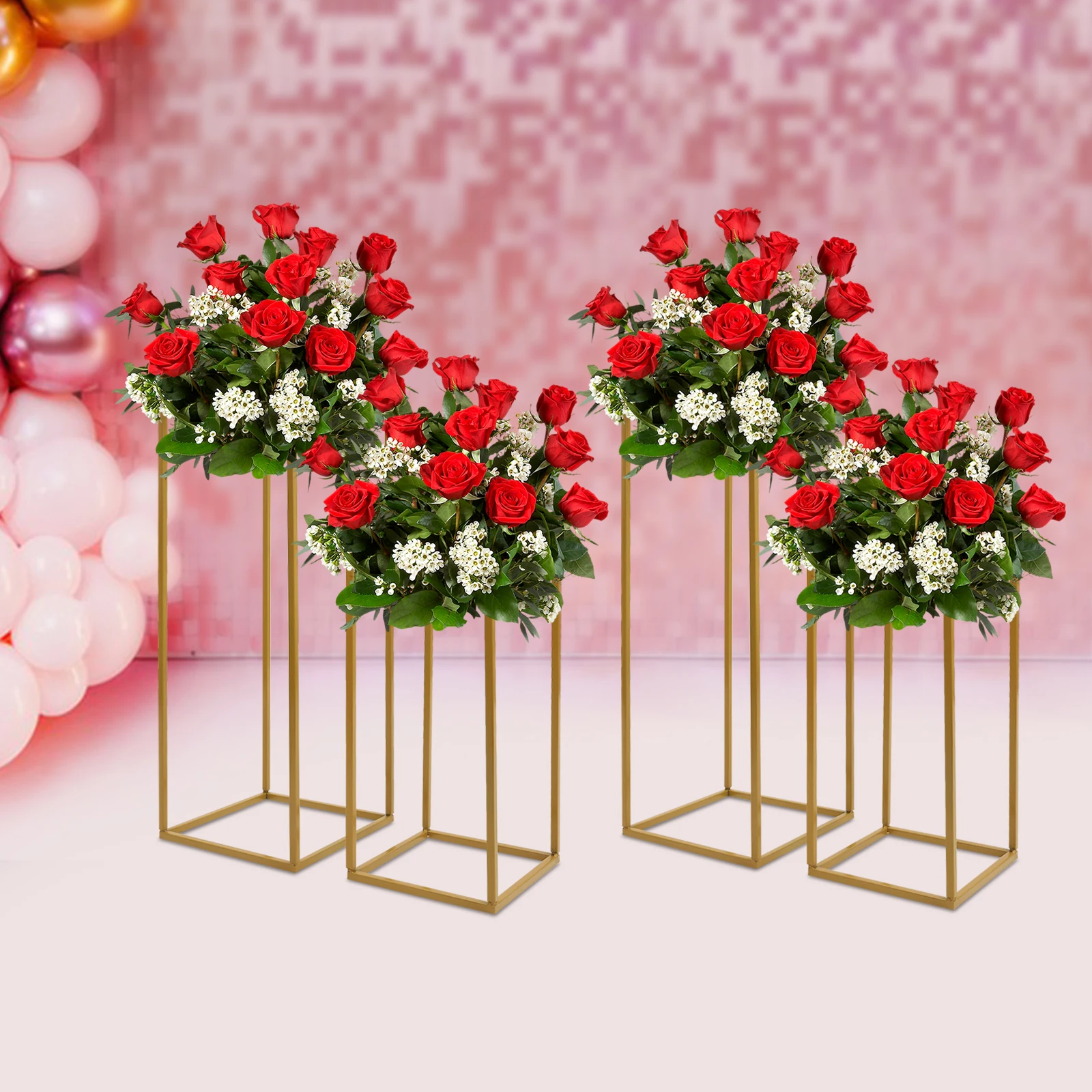 Supporto per fiori da matrimonio in oro, alto, quadrato, in metallo dorato, espositore da pavimento per vasi, decorazione per feste di compleanno