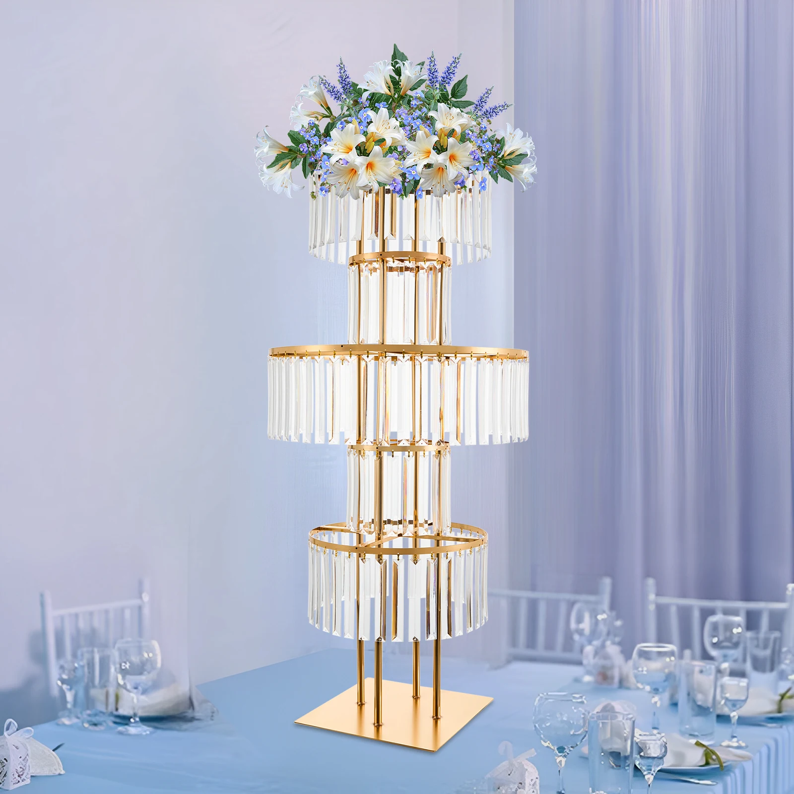 Portafiori per matrimoni in cristallo Vaso centrotavola in metallo Portafiori dorati Espositore floreale Portacandele per decorazioni per matrimoni in hotel