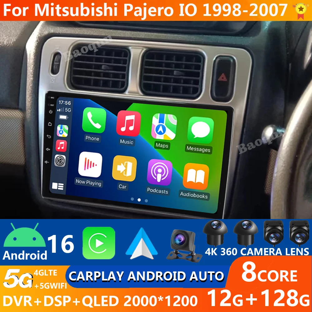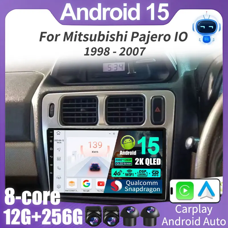 Android 15 Autoradio Per Mitsubishi Pajero IO 1998 - 2007 QLED Carplay Auto Qualcomm GPS 2DIN Multimedia Stereo Video Player BT