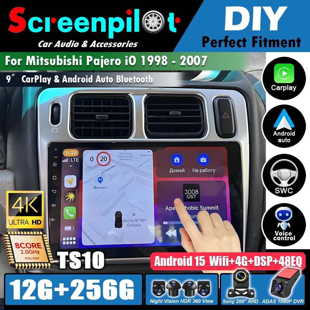 Sistema di Navigazione GPS con Schermo Touch 4G, Carplay, Video MP5 Multimediale per Mitsubishi Pajero IO 1998~2007, Wifi, FM, RDS, Dispositivi Stereo