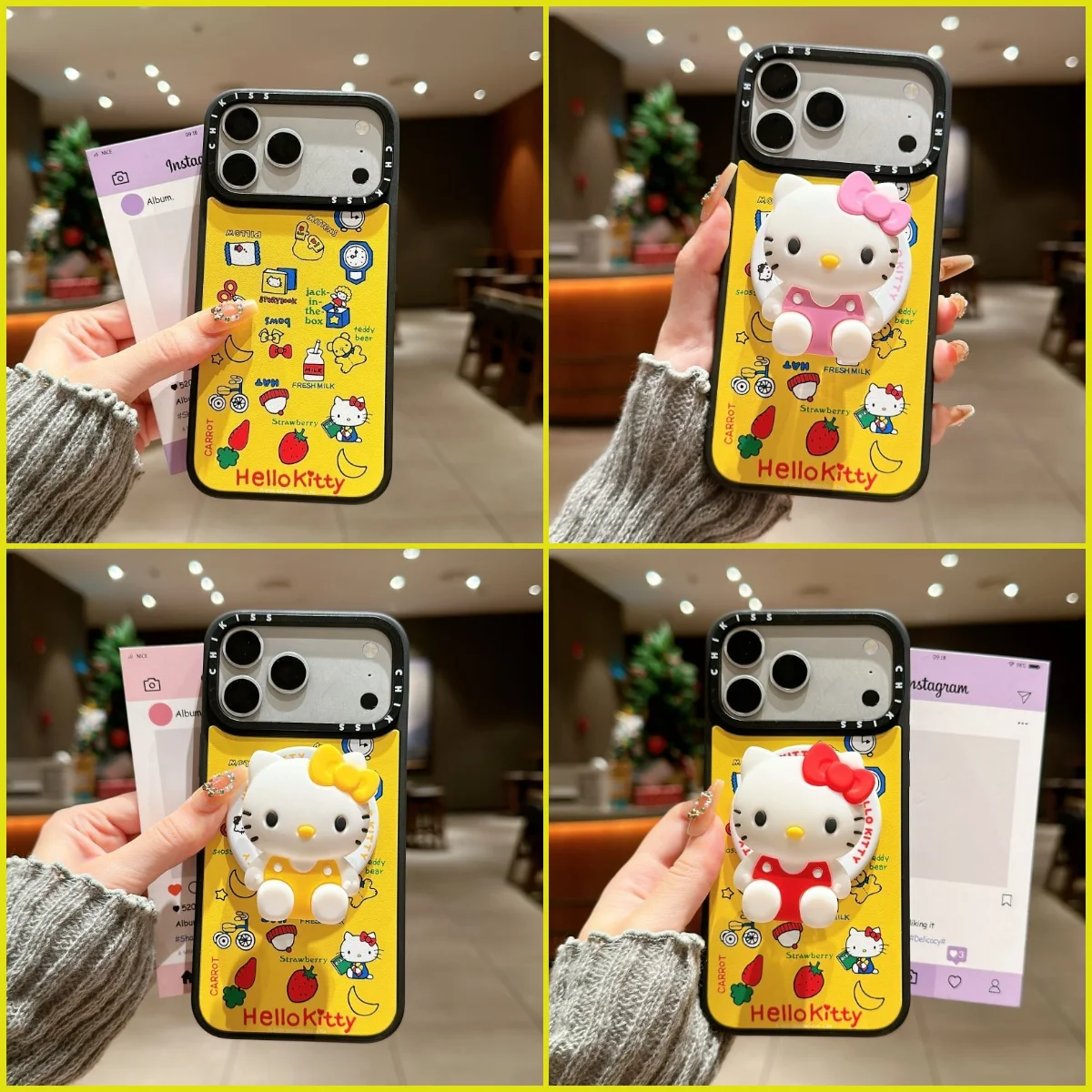 Custodia Kawaii Sanrio Cartoon Hello Kitty per iPhone 17 Pro Max 16 15 14 Pro con supporto e protezione per MagSafe, stile Graffiti