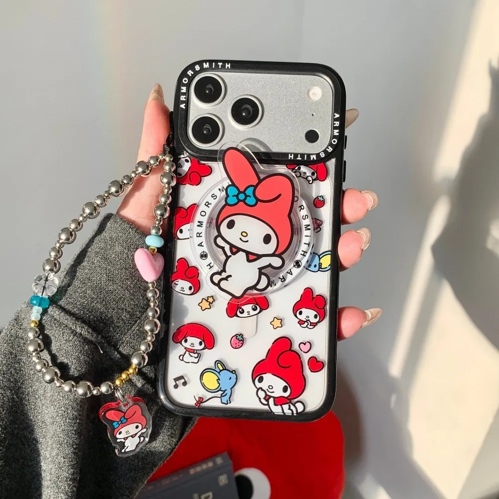 Custodia Magnetica Trendy INS Sanrio MY Melody per iPhone 17 16 15 14 13 12 Pro Max con Supporto MagSafe e Protezione Cordino