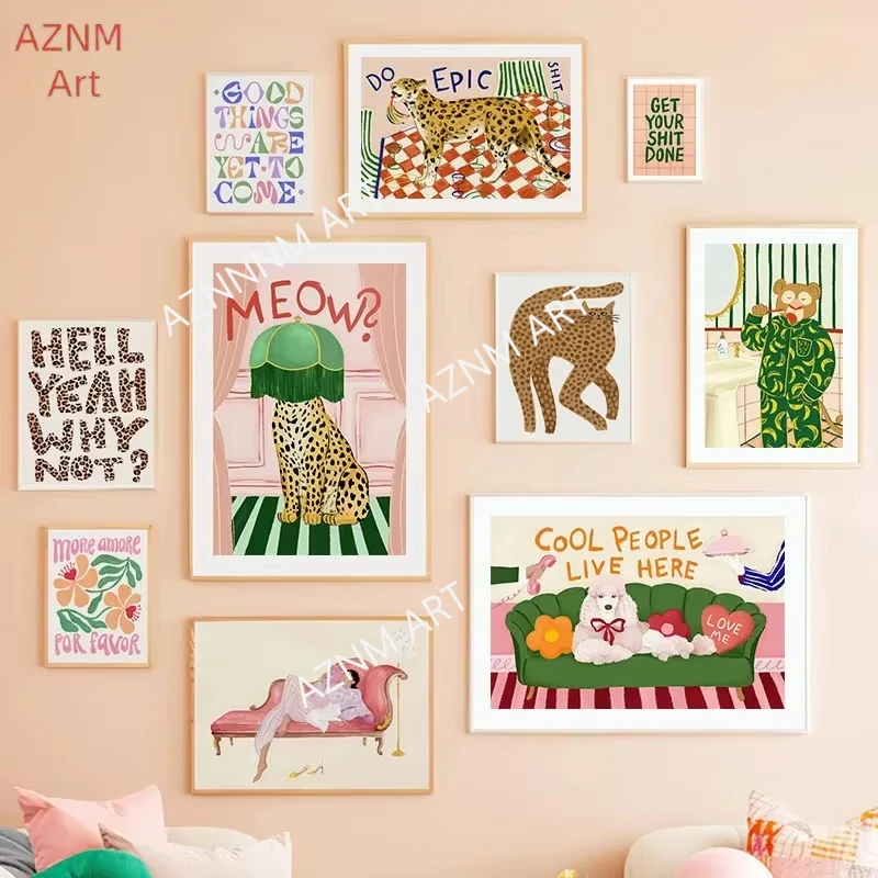 Orso Leopardo Gatto Cane Fiori Poster astratti e stampe Wall Art Canvas Painting Immagini Hotel Bar per soggiorno Decor