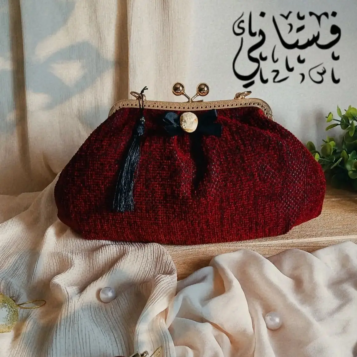 Borsa Clutch Vintage Rossa in Peluche con Chiusura a Scatto e Spilla Vintage, Pochette da Sera