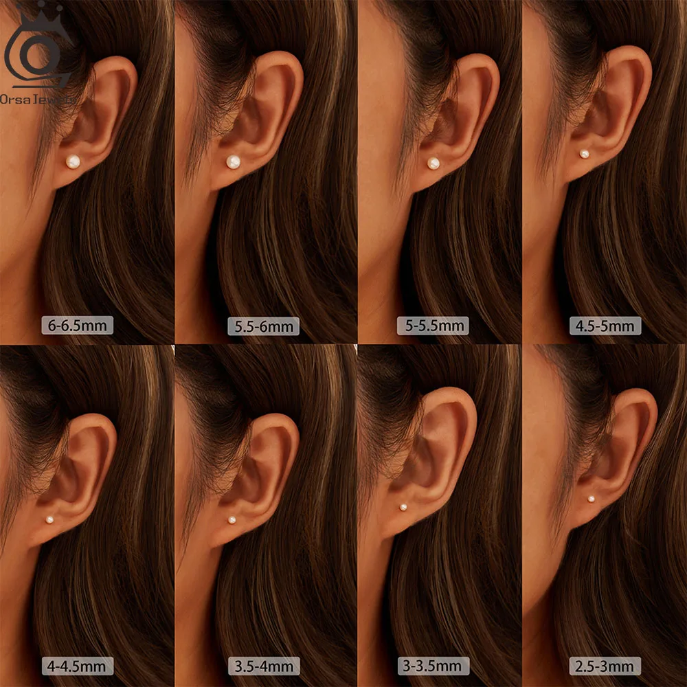 ORSA JEWELS Minimalismo 1 paio di perle d'acqua dolce Orecchini a bottone con perle vere Orecchini in argento 925 rotondi con perle naturali GPE104