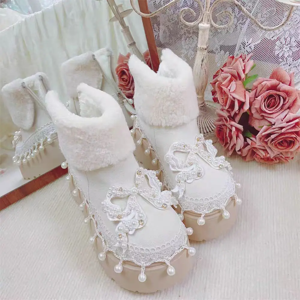 Perle di nappa di rinosio di perle bianche stivali di cotone dolce grandi scarpe di cotone femminili antiscivolo a tubo corto carino 34-40