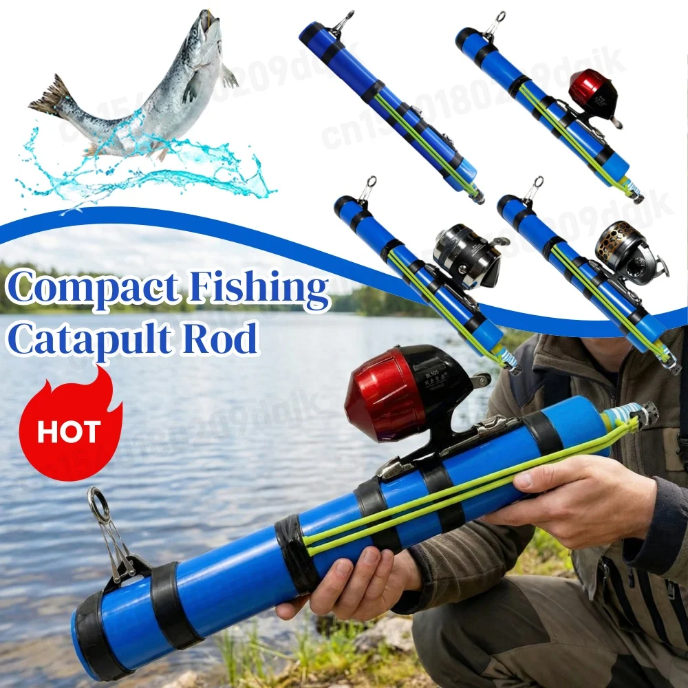 Canna da pesca compatta per catapulta, attrezzatura portatile allungabile per lancio di esche per pesci, robusto e leggero mulinello da pesca per catapulta