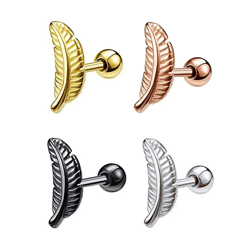 1pc 16G orecchini trago di piume per donna uomo orecchini a bottone con cartilagine in acciaio inossidabile Helix Piercing Jewelry Piercing Jewelry