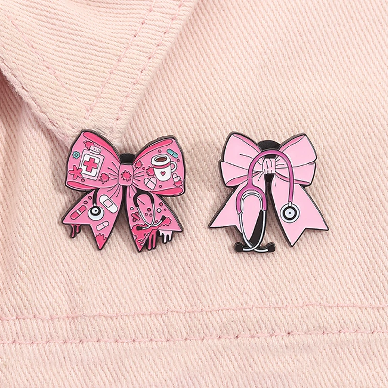 Rosa Bowknot Strumenti medici Stetoscopio Spille smaltate Guanti chirurgici Capsula Cerotto Spille Vestiti Distintivi da bavero Regalo di gioielli