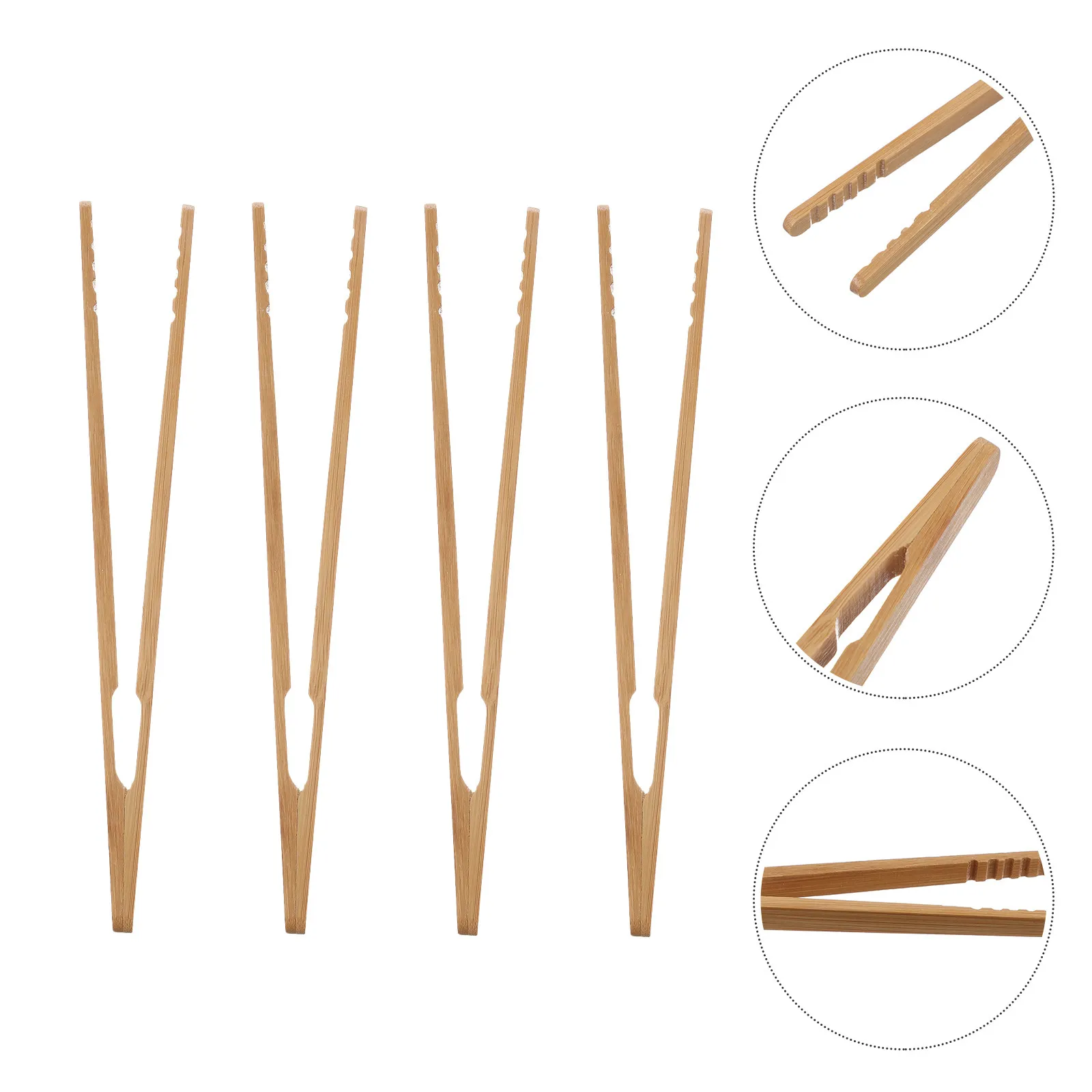 4 pinze da cucina in bambù per dessert, pinze da cucina resistenti alla corrosione, sane, sicure, pratiche, di dimensioni compatte, portatili, per picnic all'aperto