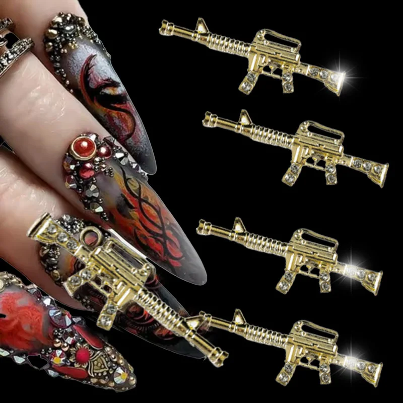 20 pezzi di armi da fuoco in metallo dorato, accessori per ciondoli per unghie, decorazioni per manicure, unghie, fucile, pistola, mitragliatrice, decorazioni di design.