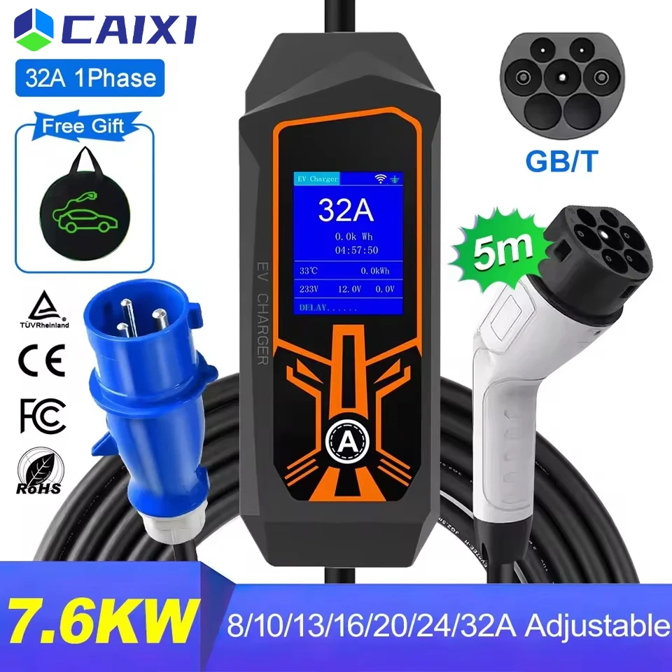 Caricatore EV CAIXI GBT 7KW 32A Regolabile Versione 5M 3.5M Set Tempo di Ricarica EVSE per Veicoli Elettrici con Ricarica su Appuntamento