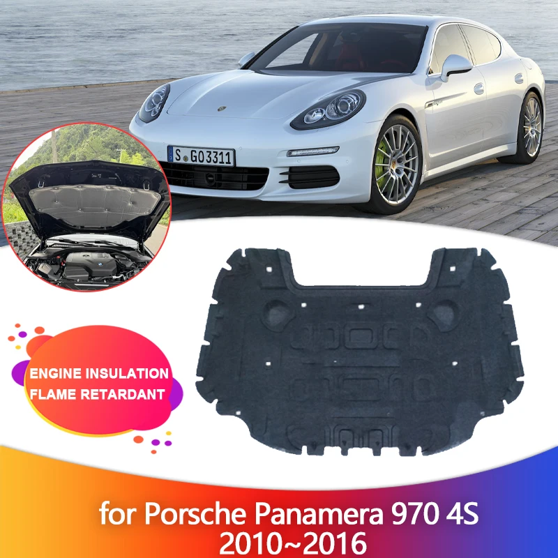 Tappetino isolante per motore auto per Porsche Panamera 970 4S 2010 ~ 2016 Cappuccio termico Suono Cotone Insonorizzato Fodera Accessori parte di copertura