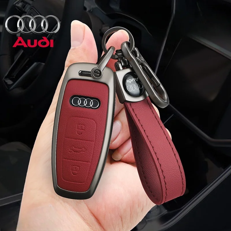 Custodia per chiave remota per auto in pelle in lega di zinco per Audi A1 A3 8P A4 A5 A6 C7 A7 S3 S7 S8 R8 Q2 Q3 Q5 Q7 Q8 SQ5 TT RS3 RS6 Portachiavi