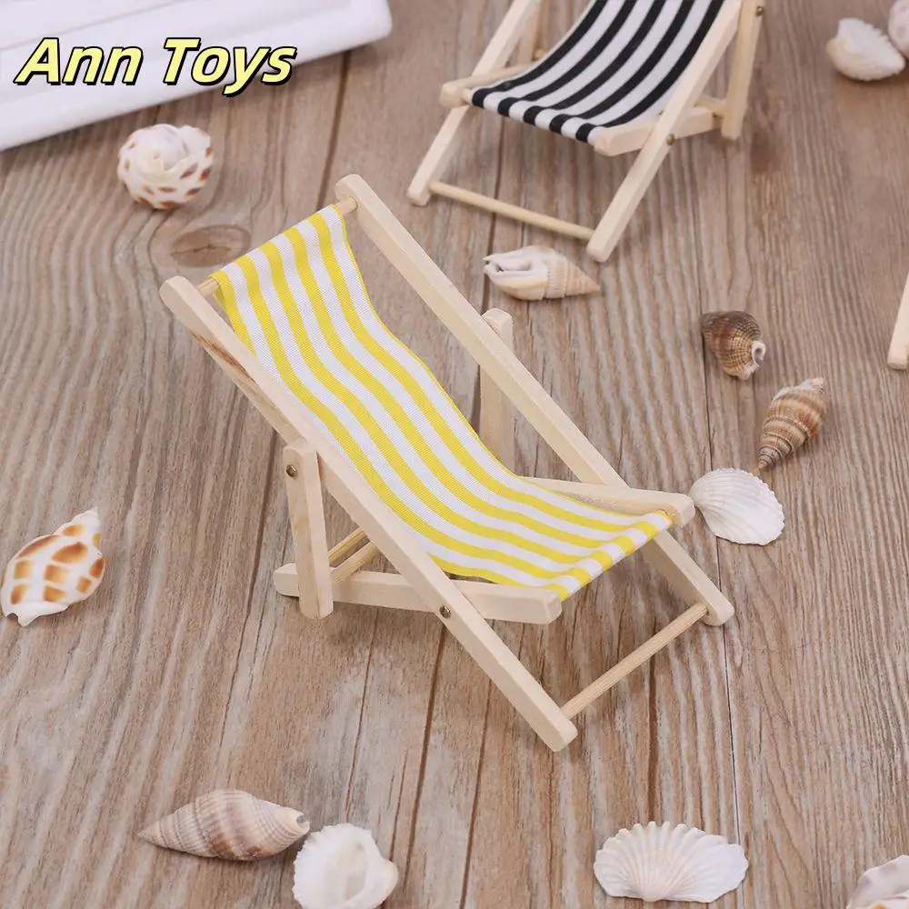 Prendere il sole giocattolo casa delle bambole sedia da spiaggia pieghevole a righe Deck Doll mobili in miniatura accessori per soggiorno decorazione del giardino