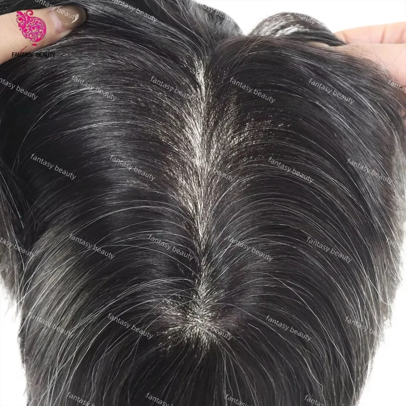 Protesi Capillare Uomo in Capelli Veri, Sistema Toupee con Attaccatura Naturale, 65% Capelli Grigi, Base in Pelle Morbida di Alta Qualità