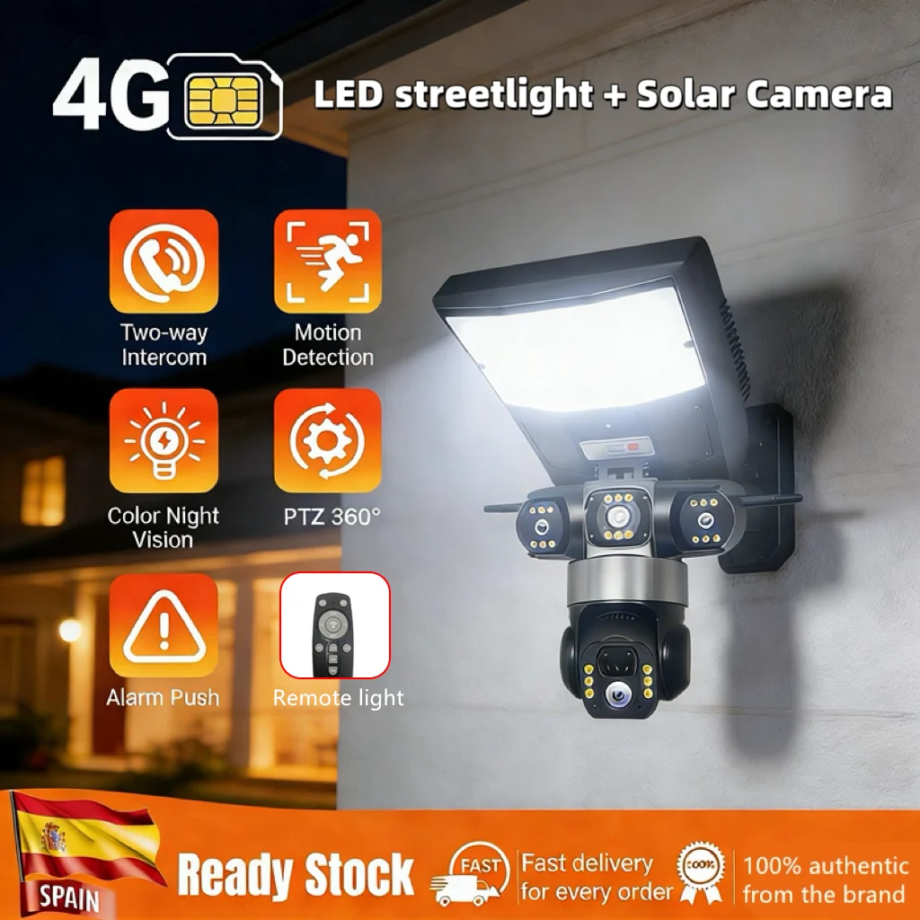 Telecamera Solare 4G HD 15MP per Esterni con Luce LED Stradale, Impermeabile, Rilevamento Movimento, Visione Notturna, Sorveglianza di Sicurezza per Giardino e Cortile