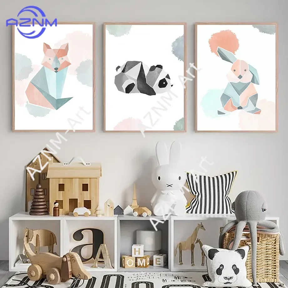 Quadri su Tela con Stampe Astratte di Animali: Elefante, Gufo, Volpe, Panda, Coniglio - Poster Estetici per Soggiorno e Arredamento Casa