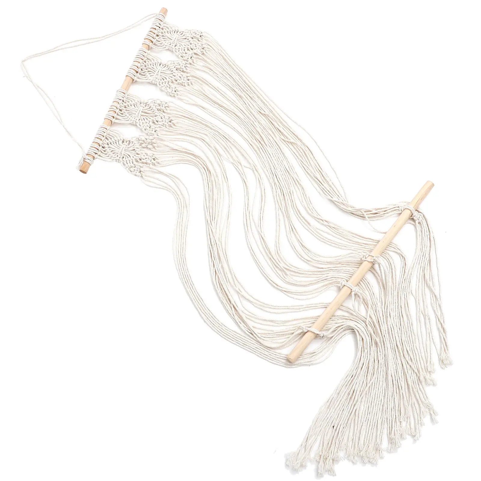 Decorazione da Parete in Macramè Bianco, Portafoto Appeso, Arredo Boho per Camera, Porta Cartoline con Nappine Ornamentali