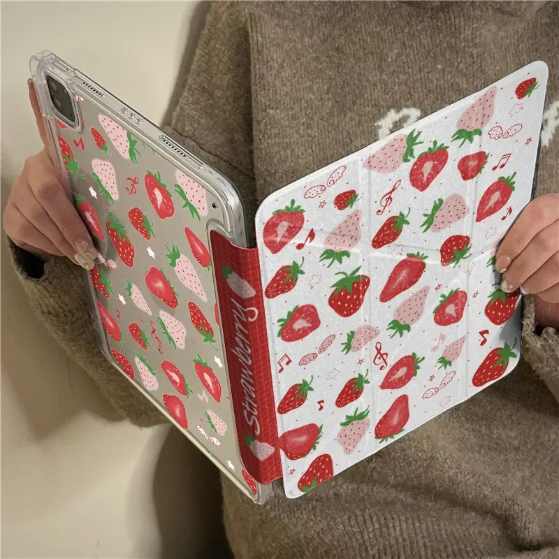 Custodia per Tablet Rosa Rossa con Motivo Fragola per iPad Pro 11 13 M2 M4 M3 9.7 10.2 5/6a 7/8/9 10a 11a Mini 6 7 Air 3 4 5 6 con Funzione Stand