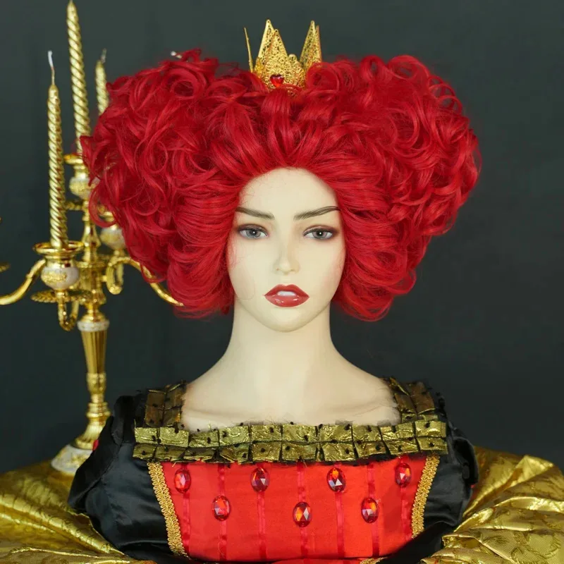 Nuovo 2026 ♥ Parrucca da regina reale rossa 7jhh Parrucca da festa per cosplay con cuore sintetico per capelli corti ricci rosso chiaro ❤ ★ ☆ ★