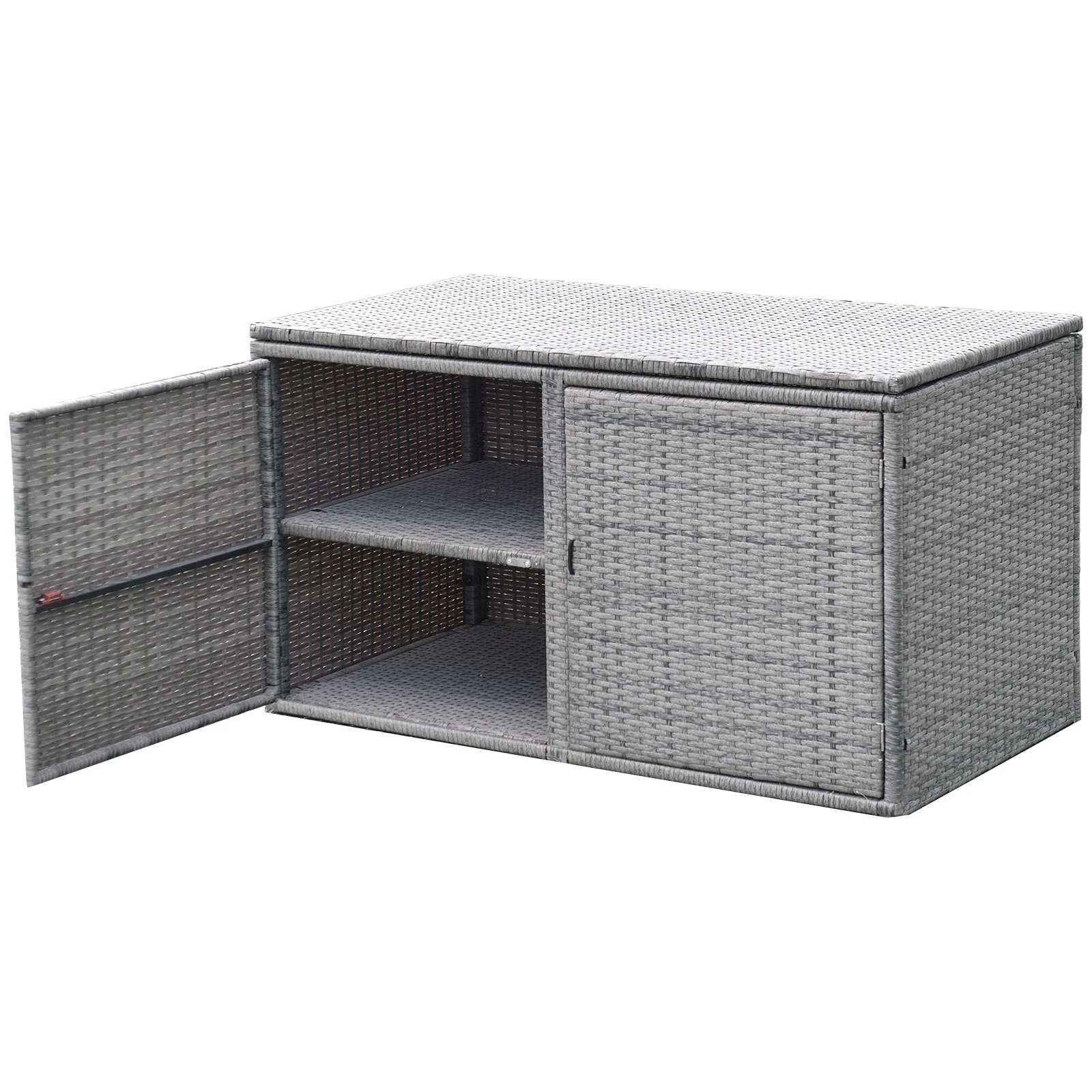 Scatola portaoggetti in Rattan da 335L, contenitore per piscina in vimini per tutte le stagioni all'aperto con coperchio e 2 ripiani, contenitore da giardino