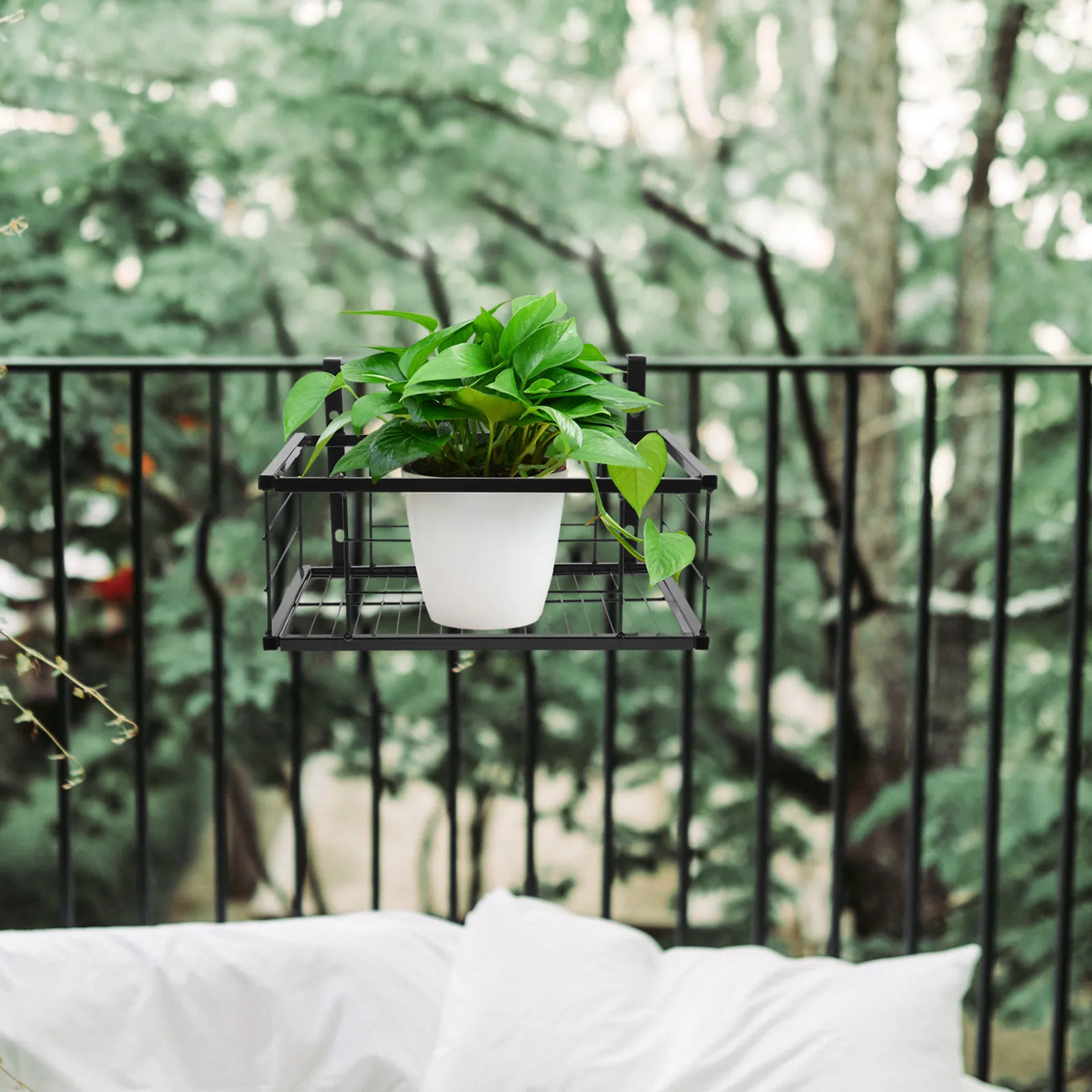 Set di 1 Supporto per Vasi da Balcone con Ganci Rinforzati, Porta Piante da Appendere per Esterni, Mensola per Ringhiera del Patio, Multifunzione per Interni