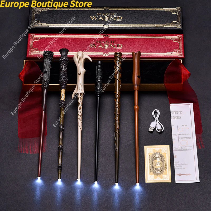 Scatola regalo con nastro in lamina d'oro, bacchetta magica luminosa ricaricabile di Harry Potter, bacchetta di Hermione con interfaccia USB, luce LED di Harry per decorare la stanza