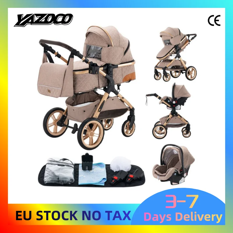 Passeggino 3 in 1 per neonati, carrozzina leggera a quattro ruote, seggiolino auto per neonati