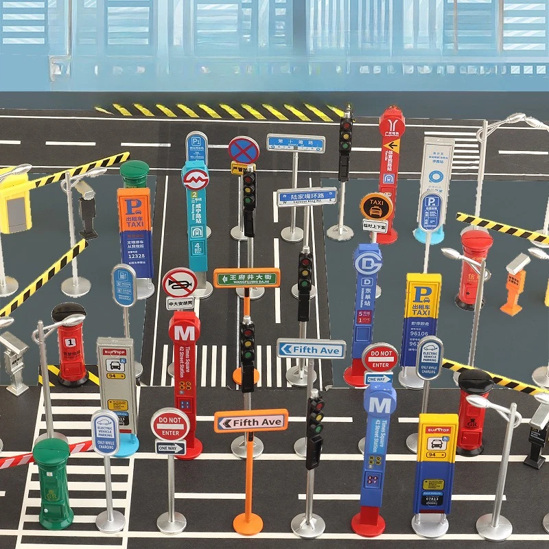 Modellino in Miniatura di Infrastruttura Stradale, Scena di Traffico e Parcheggio, Decorazione per Tavolo di Sabbia, Giocattoli per Bambini