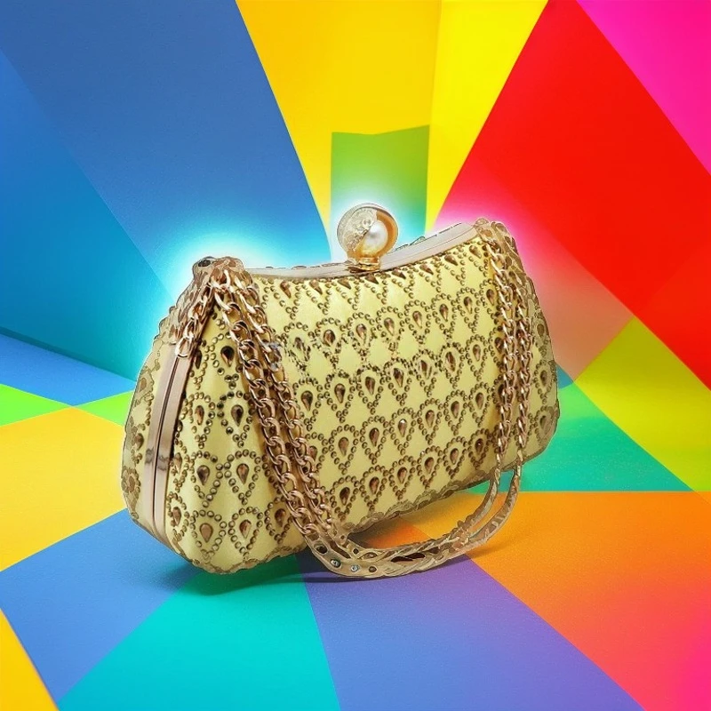 Borsa da Sera a Goccia con Diamanti su Entrambi i Lati, Clutch di Lusso Lucida con Catena a Spalla, Nuova Collezione di Borse da Donna
