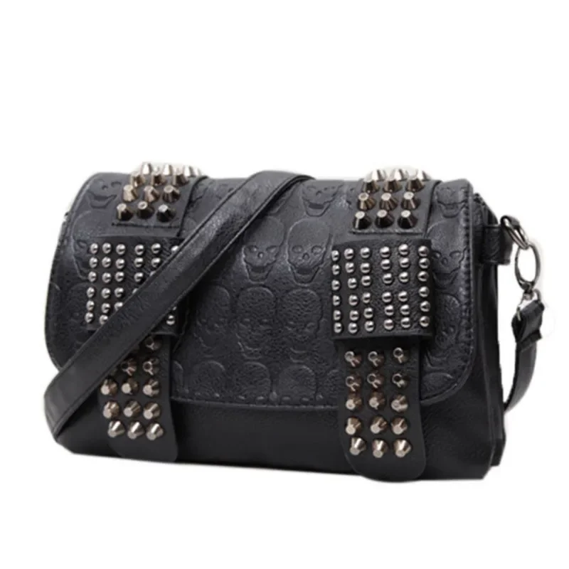 Borse a tracolla da donna in pelle nera Borse a tracolla con rivetti a teschio singolo Sac A Main Bolsa Borsa sexy vintage nera Lady Drop
