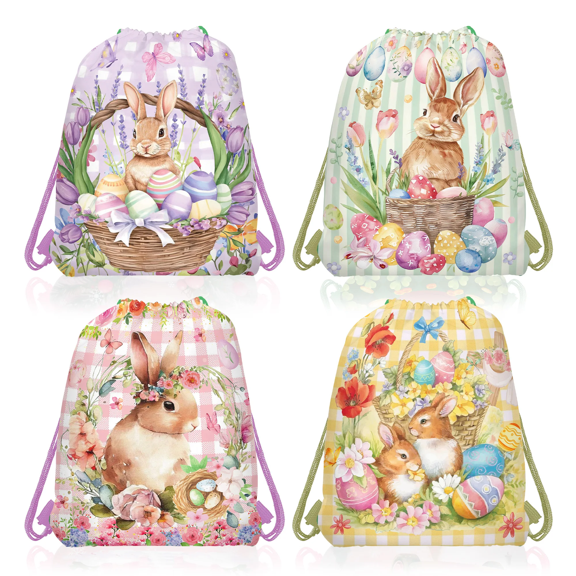 Borsa non tessuta con uovo di coniglietto pasquale da 10 pezzi, zaino in tessuto non tessuto con coulisse per attività all'aperto, sacchetto di immagazzinaggio per imballaggio regalo, forniture per feste