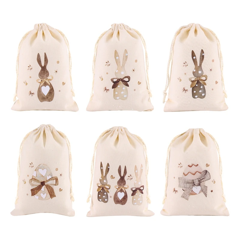 6 pezzi sacchetto regalo in lino pasquale coniglietto caramelle biscotto sacchetto di imballaggio primavera Pasqua favore di partito forniture bambini caramelle regali decorazioni pasquali 2025