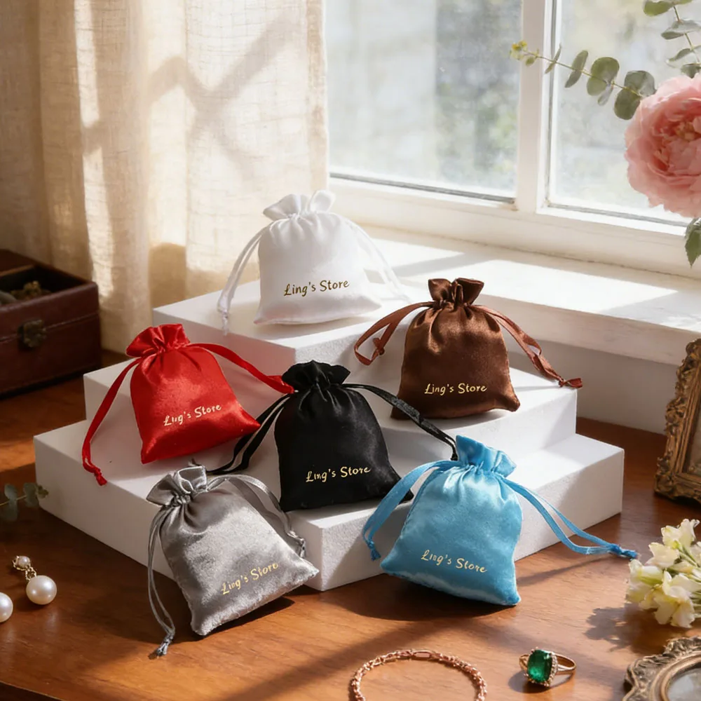 100 pezzi di velluto di seta personalizzato sacchetto regalo gioielli in raso con coulisse orecchino anello imballaggio organizzatore sacchetto bomboniera sacchetto di caramelle