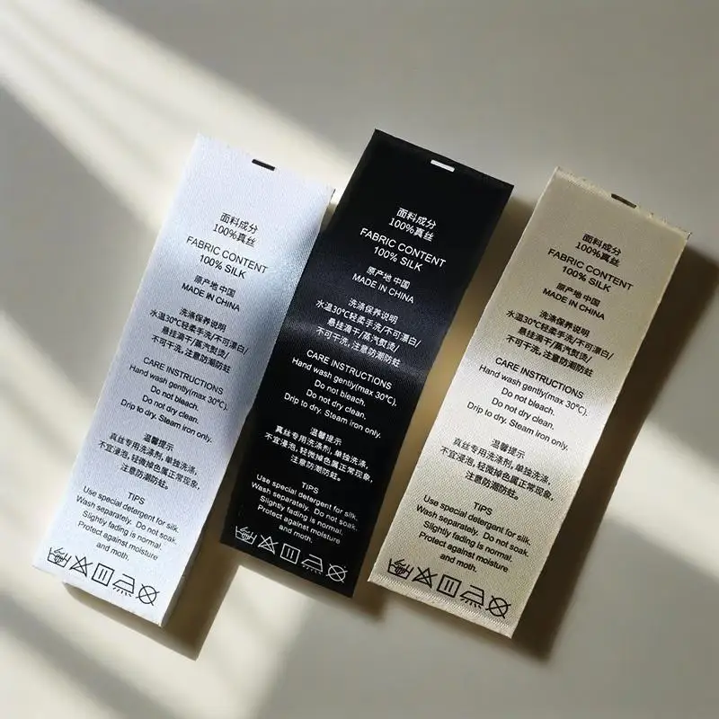 Etichetta personalizzata per la cura del lavaggio in raso per abbigliamento Etichette per indumenti stampate con logo del marchio personalizzato Etichette per istruzioni lavabili per adulti per bambini