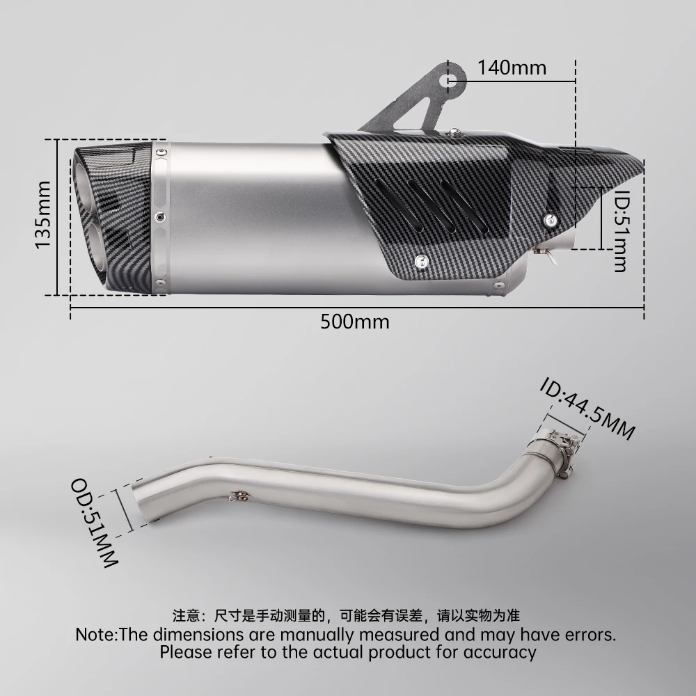 51 MILLIMETRI Universale Silenziatore Di Scarico Moto Fuga per KTM RC 125 250 390 per YAMAHA R6 R3 per Ninja Z 400 250 Z900 ZX6R