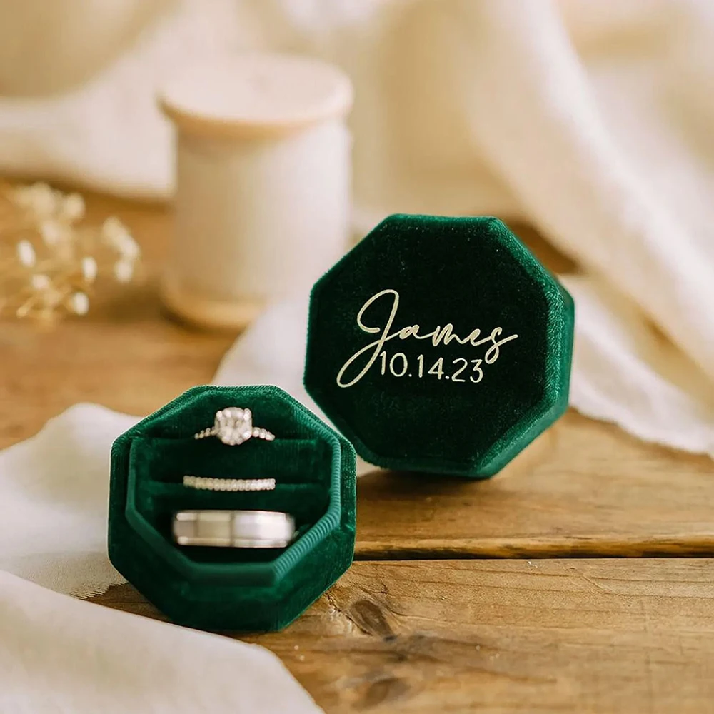 Scatola per fedi nuziali personalizzata Scatola per anelli esagonale Scatola per anelli in velluto, Scatola per anelli personalizzata, Scatola per anelli di fidanzamento con proposta di scatola per anelli doppi