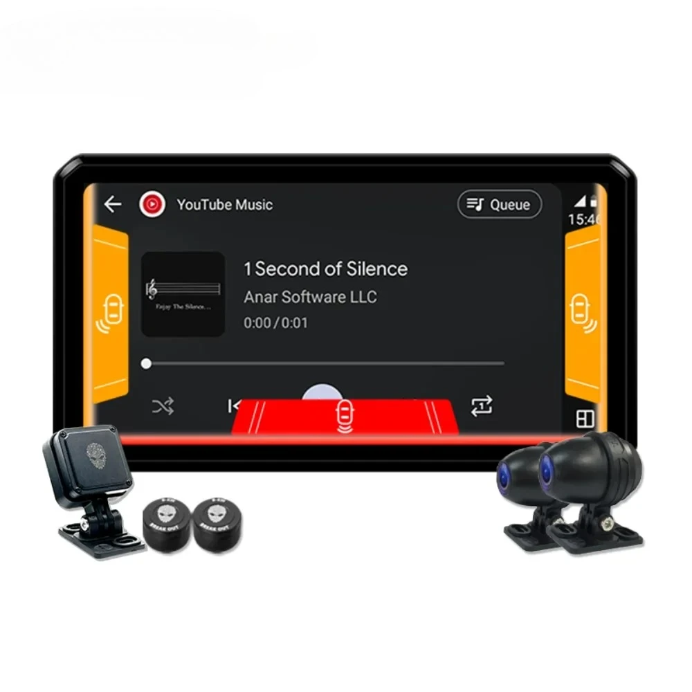 AlienRider M2 Pro Registratore per moto CarPlay Android Auto Doppia registrazione Dash Cam con touch screen da 6 pollici Radar 77GHz