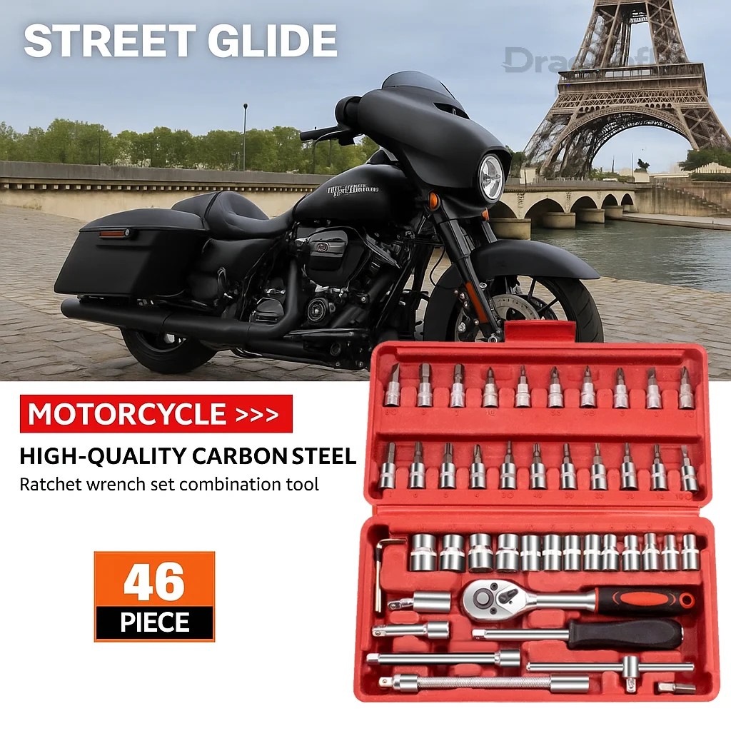 46 pezzi strumento di riparazione auto set di prese da 1/4 pollici per Harley Touring Road King Sportster XL 883 1200 Iron XR Dyna Softail