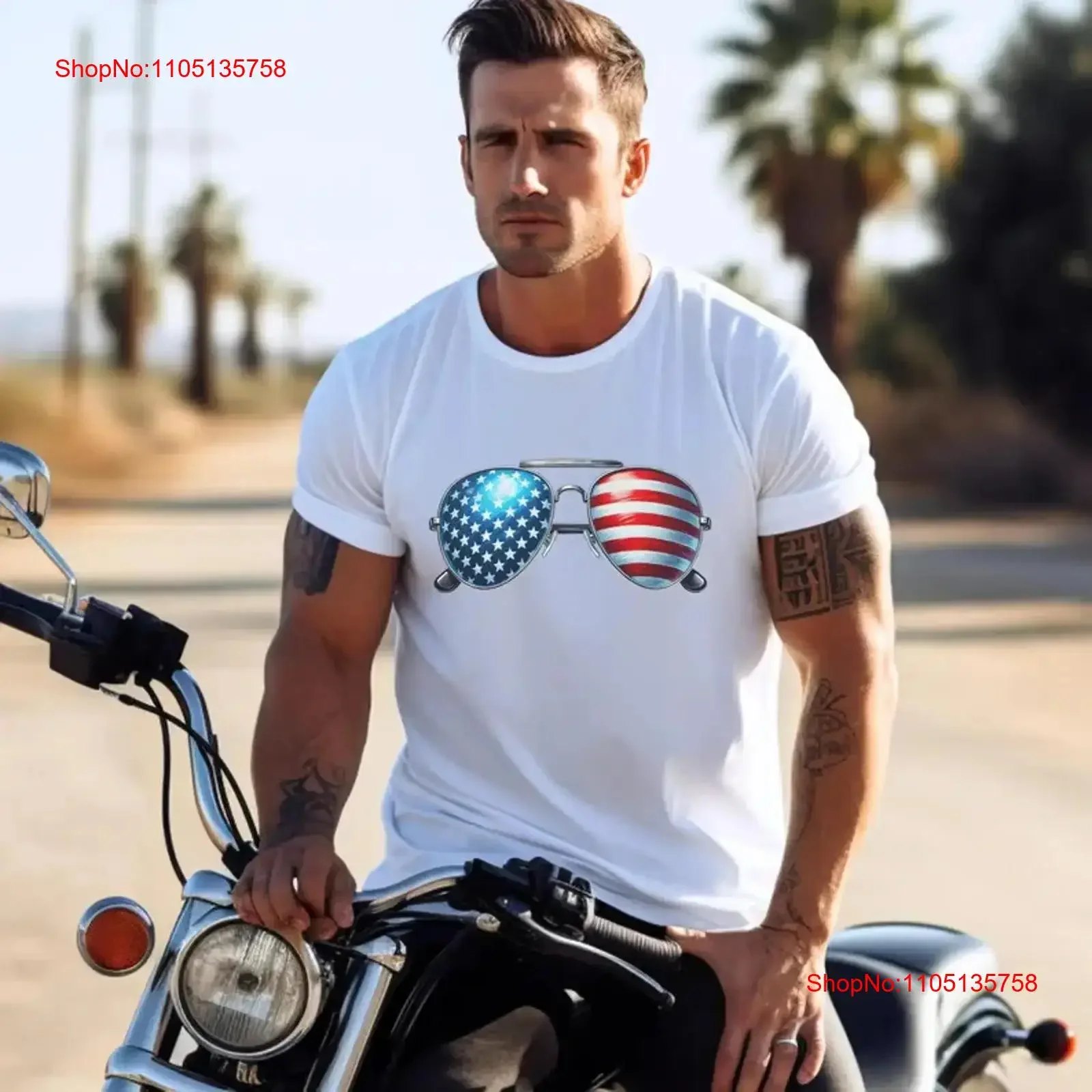 T-shirt con occhiali da sole con bandiera Merican Abbigliamento patriottico 4 luglio Giorno dell'Indipendenza vintage lavato Elegante unisex Versatile Casual