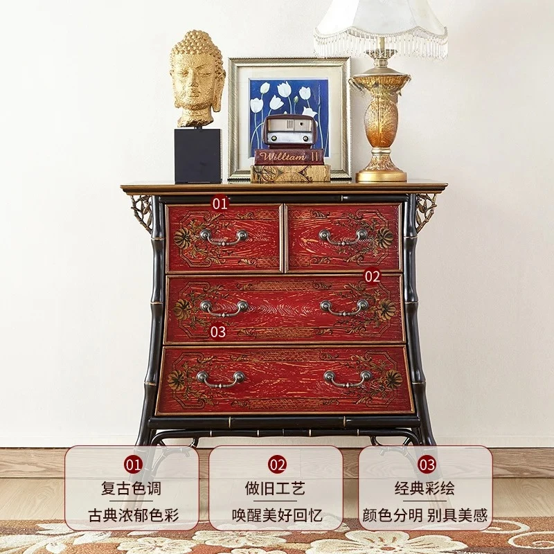Un mobiletto d'ingresso rurale mericano in legno massello retrò a quattro secchi Nuovo mobiletto decorativo per riporre la casa con divisorio per soggiorno cinese