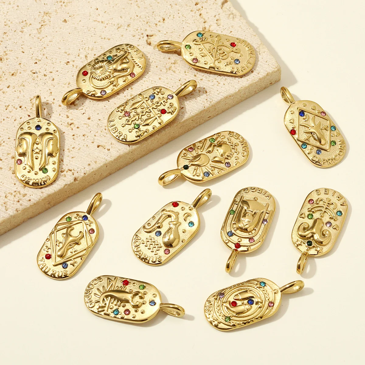 Set di 3 Ciondoli Zodiacali in Acciaio Inox Stile Retrò Francese, con Strass, Ariete e Cancro, per Collane e Gioielli da Donna