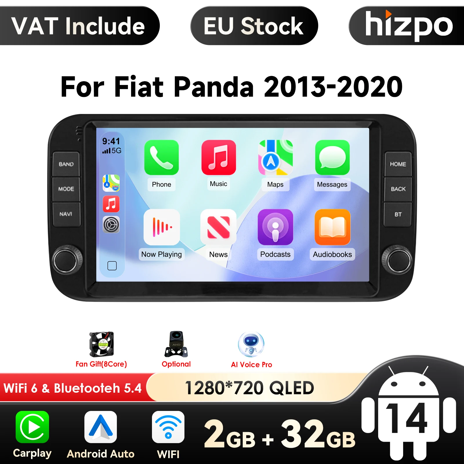 Sistema Intelligente per Auto Hikity 2Din per Fiat Panda (2002-2012) con Carplay, Audio Android Auto, GPS, Mirror Link, WIFI+4G, BT, FM/RDS