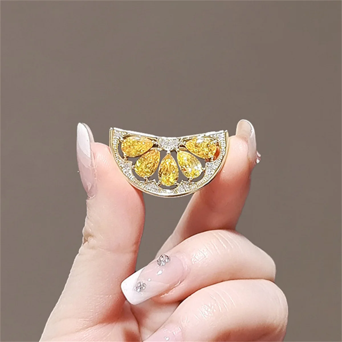 Squisito design color oro con limone, versatile tendenza della moda, accessorio personalizzato, spilla con fibbia