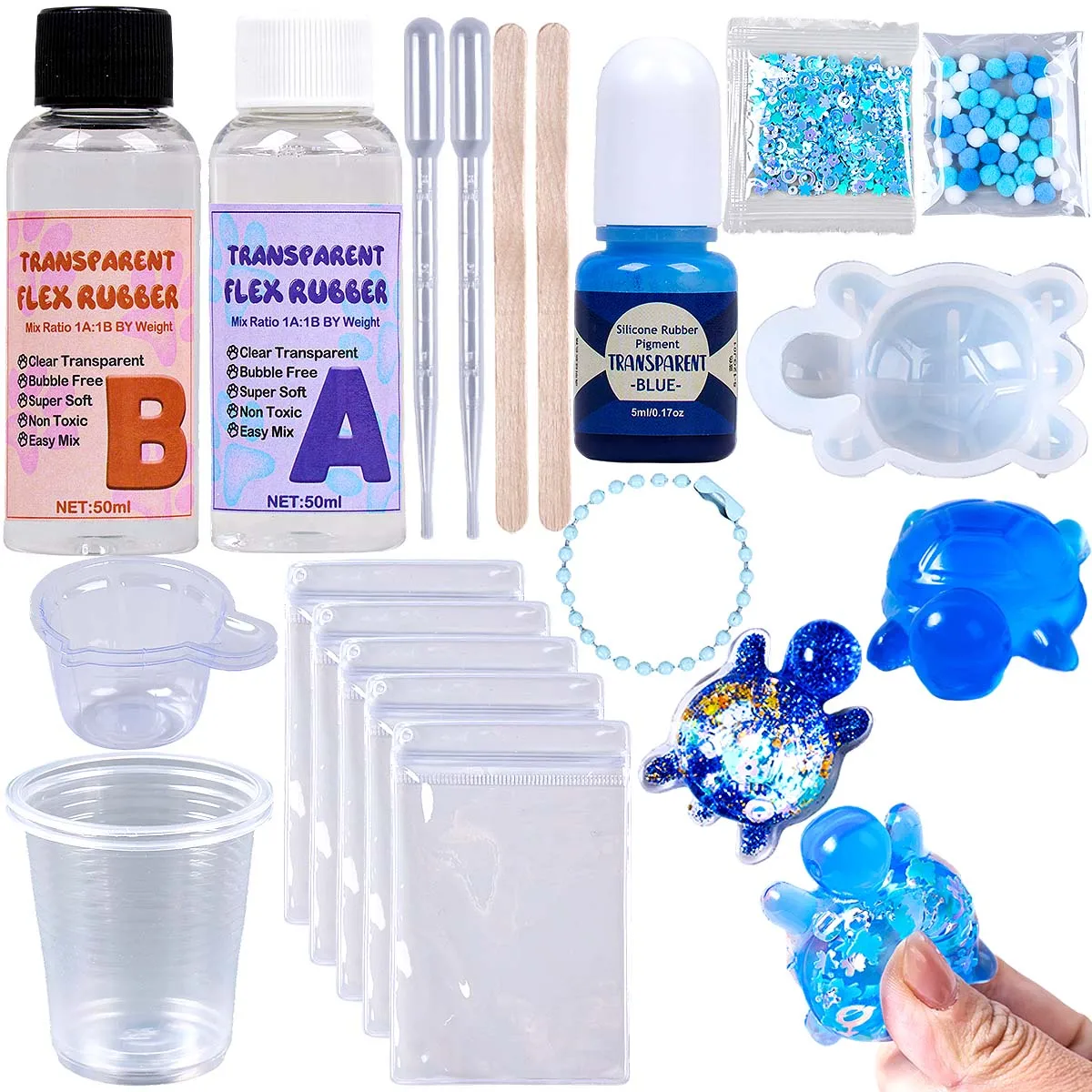 Kit Squishy Taba 50ml Resina Epossidica Colla 1:1 AB Gel Morbido Liquido 3D Stampo Silicone Tartaruga Carina Giocattoli Antistress Fai da Te Regalo
